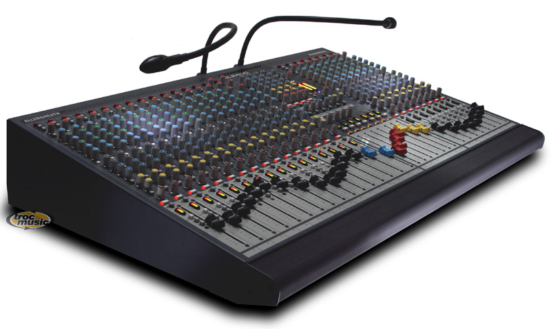 Console façade / retour de 16 à 40 entrées, 6 auxiliaires / 4 groupes / général stéréo + mono. GL2400-16 : 16 voies. GL2400-24 : 24 voies. GL2400-32 : 32 voies. GL2400-40 : 40 voies.