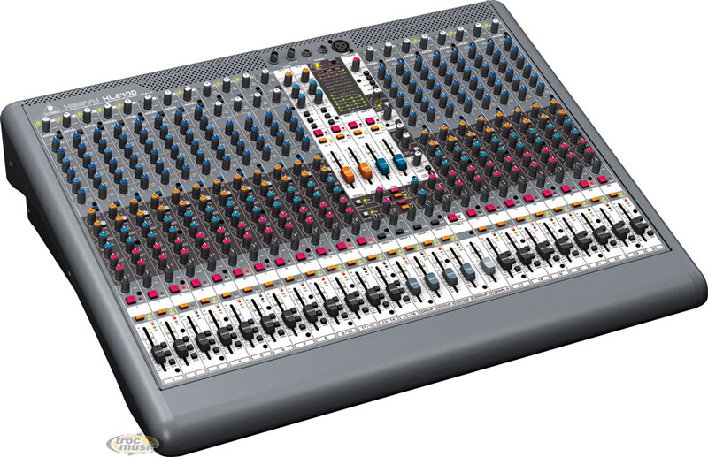 Mixeur 24 canaux 4 bus avec préamplis micros XENYX et egaliseur ''British Eq''.