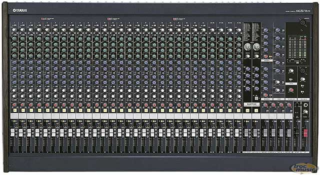 Console de Mixage 32 in, 24 micros, 4 lines, EQ 3 Band, inserts, 3 Aux, 2 multi-effets numériques.
