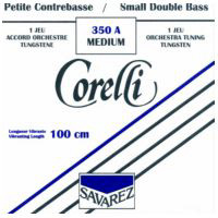 Jeu de 4 cordes pour petite contrebasse. Accord Orchestre Tungstène. Fibre acier. Série 350. Les cordes de la sérié 350 sont conçues pour des contrebasses de 1/16 à 1/2. Différentes tailles sont disponibles. Cordes Contrebasse 1/2 : Corelli 350A - longueur de corde vibrante de 100 cm. Cordes Contrebasse 1/4 : Corelli 350B - longueur de corde vibrante de 90 cm. Cordes Contrebasse 1/8 : Corelli 350C - longueur de corde vibrante de 80 cm. Cordes Contrebasse 1/16 : Corelli 350D - longueur de corde vibrante de 69 cm.
