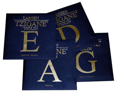 Jeu de 4 cordes Tzigane pour Violon 4/4. Tirant Moyen. Les cordes LARSEN TZIGANE ont été conçues pour offrir aux musiciens une sonorité aux résonances tziganes. La réponse sous l'archet est proche des cordes en boyau avec l'avantage d'une grande stabilité à l'accord. Les cordes TZIGANE pour violon offrent une tonalité à la fois riche et complexe favorisant d'avantage le volume à la puissance sonore.