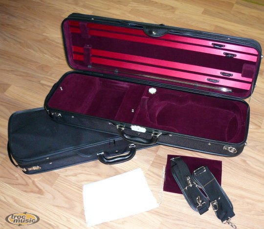 | Etui violon 4/4 en bois ultra léger et robuste. Extérieur toile imperméabilisée de très bonne fabrication, 1 poche partitions, poignée métro, bandoulières style sac à dos avec attaches renforcées métalliques. Intérieur velours, violon en suspension, 4 fixations archets, tube pour cordes, couvre cordes, housse de protection violon en soie, hygromètre, 2 compartiments accessoires. Poids : 2.450kg. |