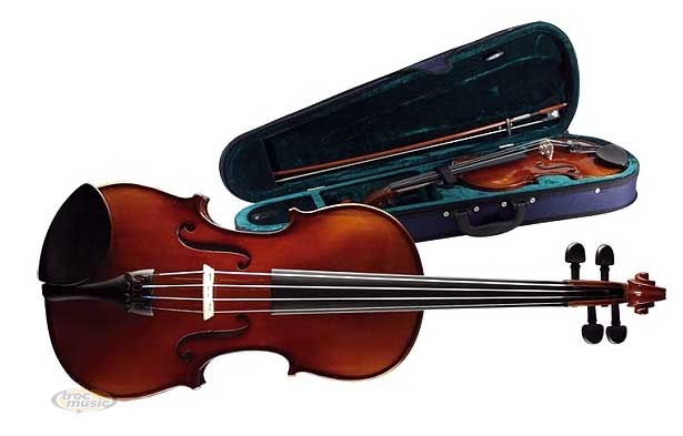 Violon enfant taille 3/4 en érable massif avec touche en ébène, fabrication artisanale. Livré en coffre avec archet et colophane.