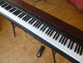 Piano numerique YAMAHA P 155 (comprend pedale de sustain et porte partition), toucher lourd, dynamique, 88 touches, nombreux sons, 2x3 pistes enregistrables, sorties : stereo auxiliaire, MIDI et USB... Premiere main, facture, annee 2010, pratique amateur, n'a jamais ete transporte, cede avec support de marque stagg