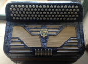 | | | Bonjour, Accordeon de marque italienne, cf image. Il est constitue de 5 lignes a boutons chromatiques (Do 1ere rangee) et de basses belges. Il a 7 sons differents. Accordeon achete, il y a 4 ans. Les boutons de la main droite ont ete changes (+feutrine). Accordeon en bois avec son de tres tres bonne qualite Il est en tres tres bon etat. Poids = 12kg Il est vendu avec des lanieres en cuir.