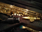 | | | Saxophone occasion entierement revise, retamponne a neuf avec tampons d'origine Selmer, resonateurs metal, corps laiton brosse mat laque, cletage argente. Coffre Selmer sac a dos.