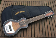 | | | Guitare Lap Steel Goldtone LS-8 Lap steel guitar (pour jouer a plat, donc), les 8 cordes permettent un peu plus de choses qu'avec une 6 cordes, notamment pour les solos dans l'aigu. Les cordes sont neuves. La construction est excellente et vraiment stable, acceptant plein d'accordages differents sans broncher.