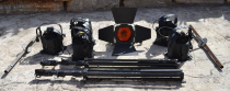 | | | A VENDRE . 6 projecteurs Multibeam, de marque OXO, en etat de fonctionnement avec : - lentilles - volets - grilles (manque 1 grille sur un projecteur) . Puissance : 575 W. maxi - 220/240 V. - 56/60 Hz. . Lampe type utilisee : HPL halogene GX 9.5 - 575 W. - 230 V. . 2 pieds ''Manfrotto'' et 2 bras Offert : - 1 lampe halogene - Quelques feuilles de gelatine de couleur. Prix : 400 euros A enlever en l'etat, sur place. Photos sur demande. Vente globale et indissociable.