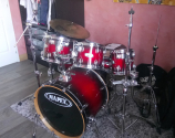 | | | Batterie Mapex serie M Birch finition black forest cherry. Batterie semi professionnelle. Les fûts sont faits de bouleau epais (7.2mm) Le corps de la batterie est constitue de 5 toms plus caisse claire. Dimension des toms: 12'' 13'' 16'' 22'' et 14'' pour la caisse claire et se rajoute a ca un tom supplementaire de 10''. L'attache des toms est constitue d'une bague de memoire afin de memoriser l'emplacement de vos toms sur le corps de la batterie. Pour ce qui est des pieds de cymbales; la batterie d'origine est fournie avec le pied de charleston ainsi que deux pieds perches de cymbales. La perche est retractable dans le tube et les hardwares sont solides (double embase). La batterie est en superbe etat, tres belle qualite, tant dans ses finitions et son design, que dans le son et ses caracteristiques. La batterie est au prix de 600€ pour tout l'equipement que je viens de decrire, j'y ajoute un pied de cymbale supplementaire (meme caracteristique) ainsi qu'un tabouret Gibraltar.
