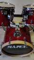 Kit complet Mapex M Series (Basswood / Maple) Gold Stamp des annees 2000 Config 20 10 12 14 + cc14 + accessoires Red Lacquered completee avec Charley Sabian Fusion Hi Hat 14 et ride Pearl Wild 300 Tres belles projections dans les basses, un superbe kit fusion