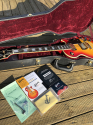 | | | Magnifique Custom de 2008 a finition « Heritage Cherry Sunburst » avec accastillage dore. Guitare a l'etat neuf (voir photos), n'ayant quasiment jamais servi. Qualite superieure du custom shop, top du top de la ligne Les Paul de Gibson, construite sur le modele original de 1954. Contrairement aux modeles recents qui ont une touche en « richlite » (materiau fait de papier recycle melange a une resine) celle-ci, qui date de 2008, a une touche en ebene (bois precieux) comme l'originale de 1954. Caracteristiques : Corps en acajou Table bombee en erable Manche en acajou Touche en ebene Reperes blocs en nacre 1 micro double bobinage Gibson 490R (manche) 1 micro double bobinage Gibson 498T (chevalet) Accastillage dore Chevalet tune-o-matic avec stopbar Binding sur la tete et le corps 2 volumes, 2 tonalites, selecteur 3 positions Couleur: Heritage Cherry Sunburst Livree en etui Fabriquee aux USA Poids : 4,2 kg Elle est livree avec son etui Gibson d'origine, le certificat d'authenticite et le livret Gibson. Frais de port par Chronopost avec assurance : 90 euros