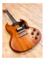 | | | Une GIBSON Firebrand The SG Standard de 1980 en finition naturelle. Un coin de la tete a ete repare avec de la pate a bois (voir photo) , le reste de la guitare a des signes d'usure moderes Modele peu repandu, il se distingue d'une SG standard par une touche en ebene Entierement originale